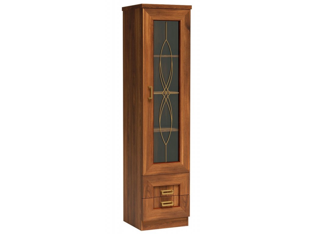 Vitrína jednodveřová se zásuvkami ze sektorové řady. Vitrína má 1 prosklené dvířka a 2 praktické zásuvky. Systém je exkluzivní kolekce navržena v duchu vintage. Celá řada se vyznačuje elegancí a jednoduchými tvary, které zaručují plné využití prostoru. Nábytek je vyroben z velmi kvalitní LTD o tloušťce 16 mm, horní deska zesílena na 32 mm, lišty na čele nábytku jsou MDF, hrany ABS. Tvrzené sklo ve vitrínách je jemně zdobené. Elegantní úchyty jsou z kovu. Barevné provedení dub stoletý. Vitrína má univerzální otvírání dvířek. Dodáváme v demontovaném stavu.