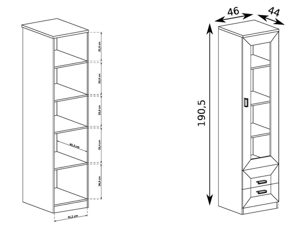 šířka: 90 cm | výška: 190 cm | hloubka: 44 cm Vitrína dvoudveřová se 2 zásuvkami ze sektorové řady. Vitrína má 2 prosklené dvířka a 2 praktické zásuvky. Systém je exkluzivní...