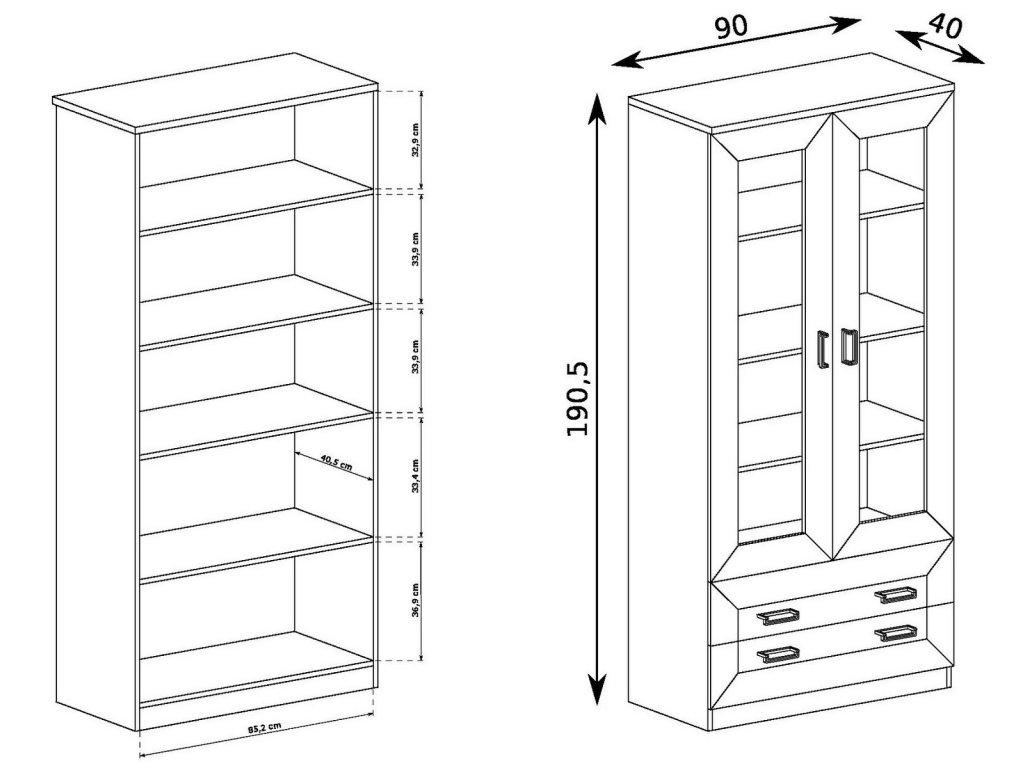 šířka: 90 cm | výška: 190 cm | hloubka: 57 cm Šatní skříň dvoudveřová s 1 zásuvkou ze sektorové řady. Skříň má 2 dveře, 1 praktickou zásuvku a uvnitř volný prostor se šatní...