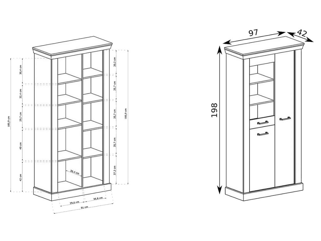 šířka: 108 cm | výška: 202 cm | hloubka: 42 cm Knihovna - vitrína dvoudveřová značkového výrobce, který si potrpí na kvalitě a detailech. Nábytek je vyráběn v rustikálním duchu,...