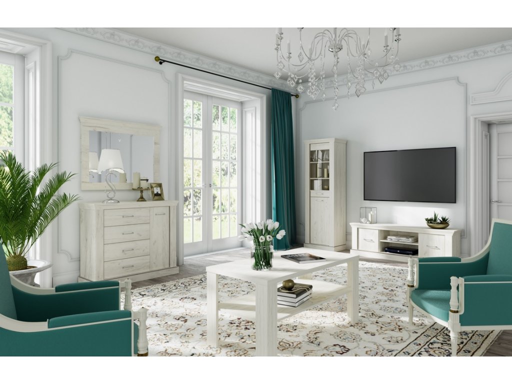 Vitrína třídveřová v glamour stylu v barevném provedení dub kraft bílý. Nábytek je vyroben z kvalitního lamina v kombinaci s MDF ohraničeného ABS páskou a také je vybaven systémem tichého dovírání. Úchyty jsou kovové. Kolekce se skládá z mnoha prvků a tento široký výběr Vám zaručí sestavit si nábytek podle svých vlastních představ a přání. K vitríně je možné dokoupit led osvětlení police. Dodáváme v demontovaném stavu.