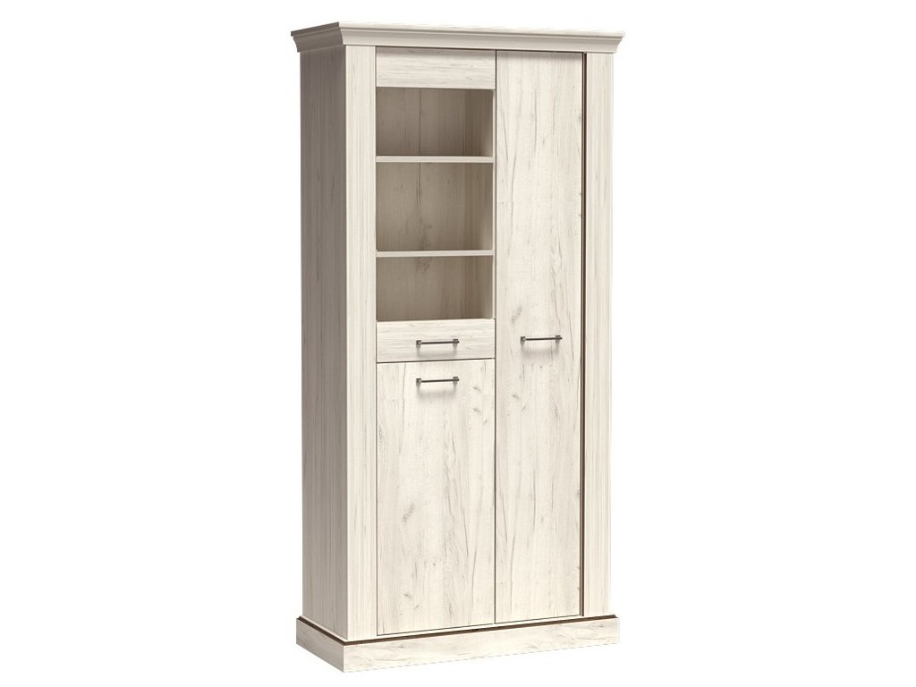 šířka: 90 cm | výška: 190 cm | hloubka: 44 cm Vitrína dvoudveřová se 2 zásuvkami ze sektorové řady. Vitrína má 2 prosklené dvířka a 2 praktické zásuvky. Systém je exkluzivní...