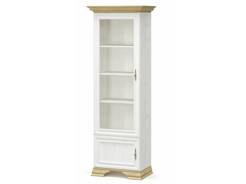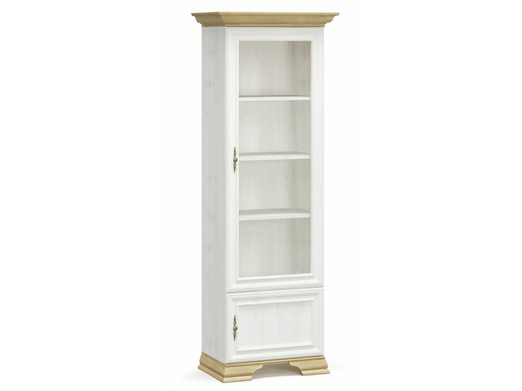 Vitrína ze sektorové řady nábytku v romantickém stylu. Nábytek je vyroben z kvalitní LTD v kombinaci s MDF v barevné kombinaci borovice andersen/zlatý dub. V naší nabídce najdete další jednotlivé prvky tohoto nábytku, ze kterého si můžete zařídit obývací pokoj dle vlastních potřeb. Dodáváme v demontovaném stavu.
