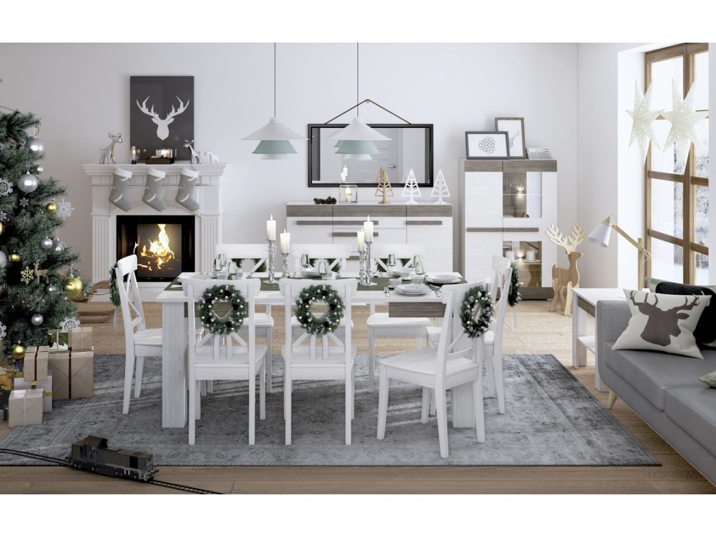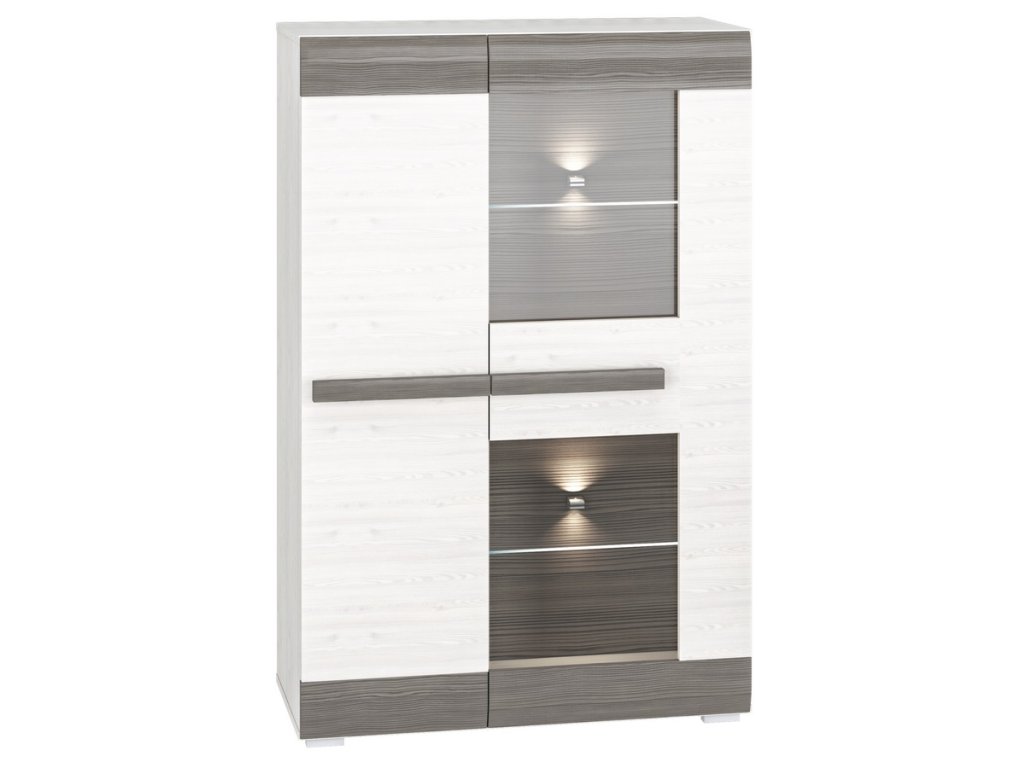 Vitrína nízká LANTANA borovice sněžná/šedá