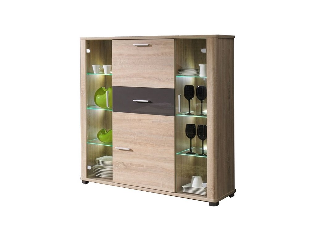 šířka: 110 cm | výška: 136 cm | hloubka: 40 cm Komoda s částečně prosklenými dvířky APETTITA ze sektorové řady, která se vyznačuje netradičním zpracováním barev a originalitou...