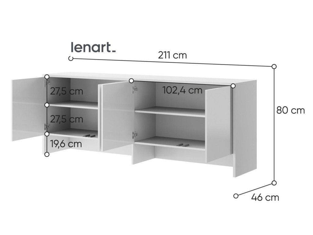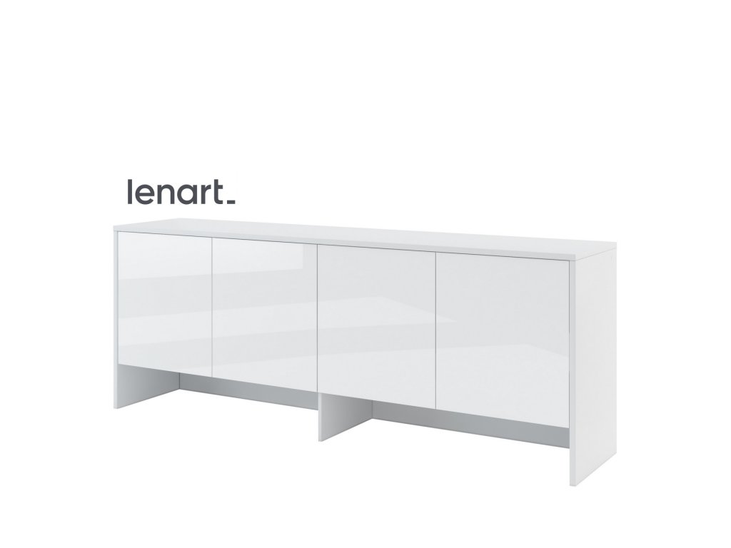 Nádstavec k výklopné posteli široká 120 bílá lesk/bílá mat. Nádstavec má 4 dvířka. Rozměry viz obrázek. Nábytek je vyroben z kvalitního lamina s ABS hranou. Lamino je odolné proti poškrábání, poškození, vlhkosti a vysokým teplotám. Dodáváme v demontovaném stavu.Doplňkové parametry