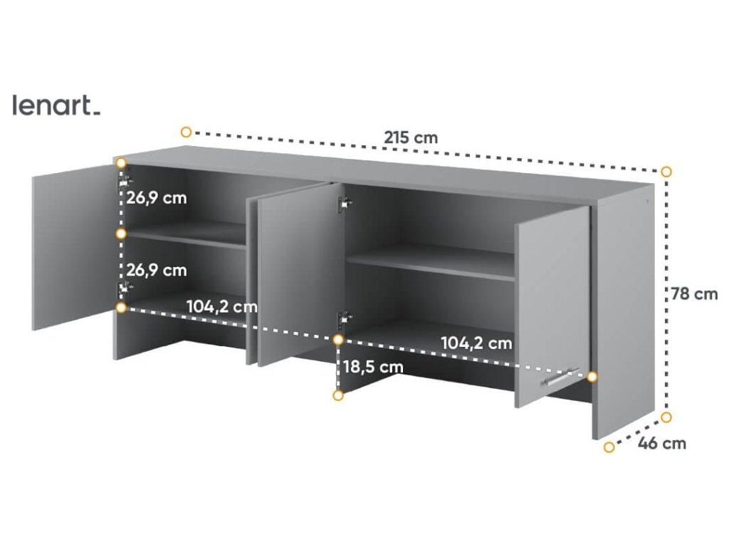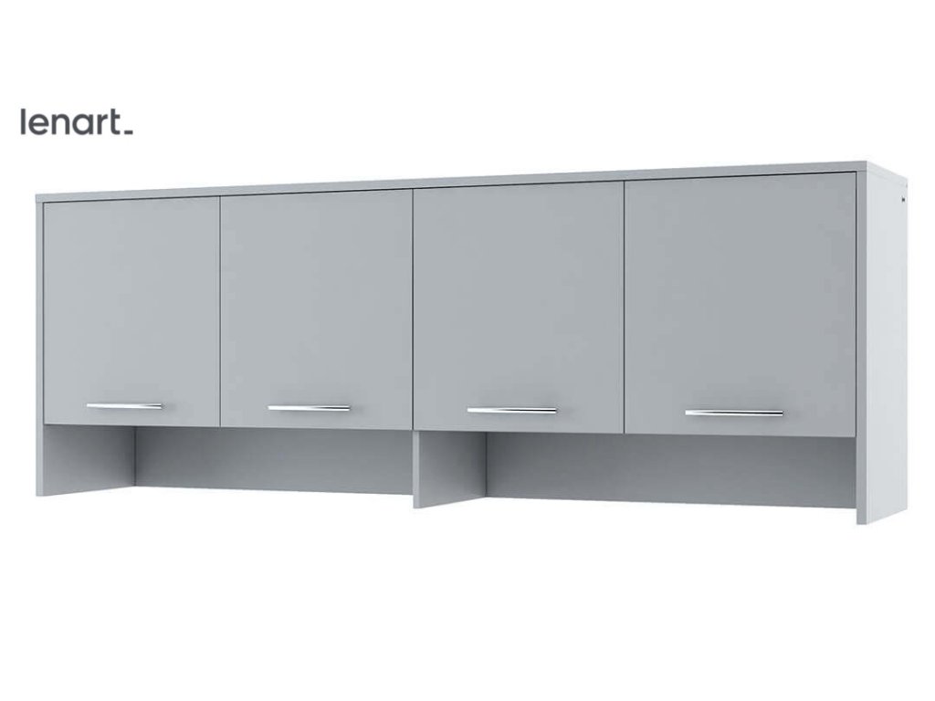 Nádstavec šedý k výklopné posteli ze sektoru CONCEPT PRO. Rozměry viz obrázek. Nádstavec má 4 dvířka. Nábytek je vyroben z kvalitního lamina s ABS hranou. Lamino je odolné proti poškrábání, poškození, vlhkosti a vysokým teplotám. Dodáváme v demontovaném stavu.Doplňkové parametry
