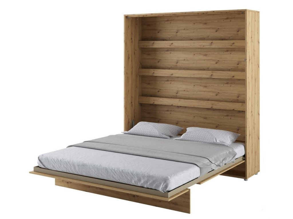 Vysoká výklopná postel 180 dub artisan. Rozměry viz obrázek. Se sklápěcí postelí Vás už nebude trápit malý prostor Vaší domácnosti. Díky stabilní konstrukci zaručuje pohodlný odpočinek. Pneumatický mechanismus sklápění postele zajistí bezpečné otevírání a je doplněn SOFT CLOSE systémem tichého zavírání. Tento výjimečný systém Vám umožní manipulaci pouze jedním prstem. Když je postel sklopená, vypadá jako běžná skříň. Vyklopením se vytáhne celá délka postele. Při lozložení postele má hloubku 228 cm. Uvnitř skříně jsou praktické police na knížky nebo dekorační předměty, vše máte na dosah ruky. Maximální zatížení polic je 5 kg. Rám je nutno přišroubovat ke zdi, nosnost postele je 200 kg. Rošt postele je v ceně, matrace není součástí, je potřeba ji dokoupit. Doporučujeme velikost 180 x 200 x výšku do 18 cm. Po sklopení postele vzniká prostor pod postelí o výšce 24,9 cm. Nábytek je vyroben z kvalitního lamina s ABS hranou. Lamino je odolné proti poškrábání, poškození, vlhkosti a vysokým teplotám. Postel nabízíme v několika velikostech a barevných provedeních. K posteli je možné dokoupit LED osvětlení. Dodáváme v demontovaném stavu. Můžete si prohlédnout prezentační video, klikněte ZDE.Doplňkové parametry
