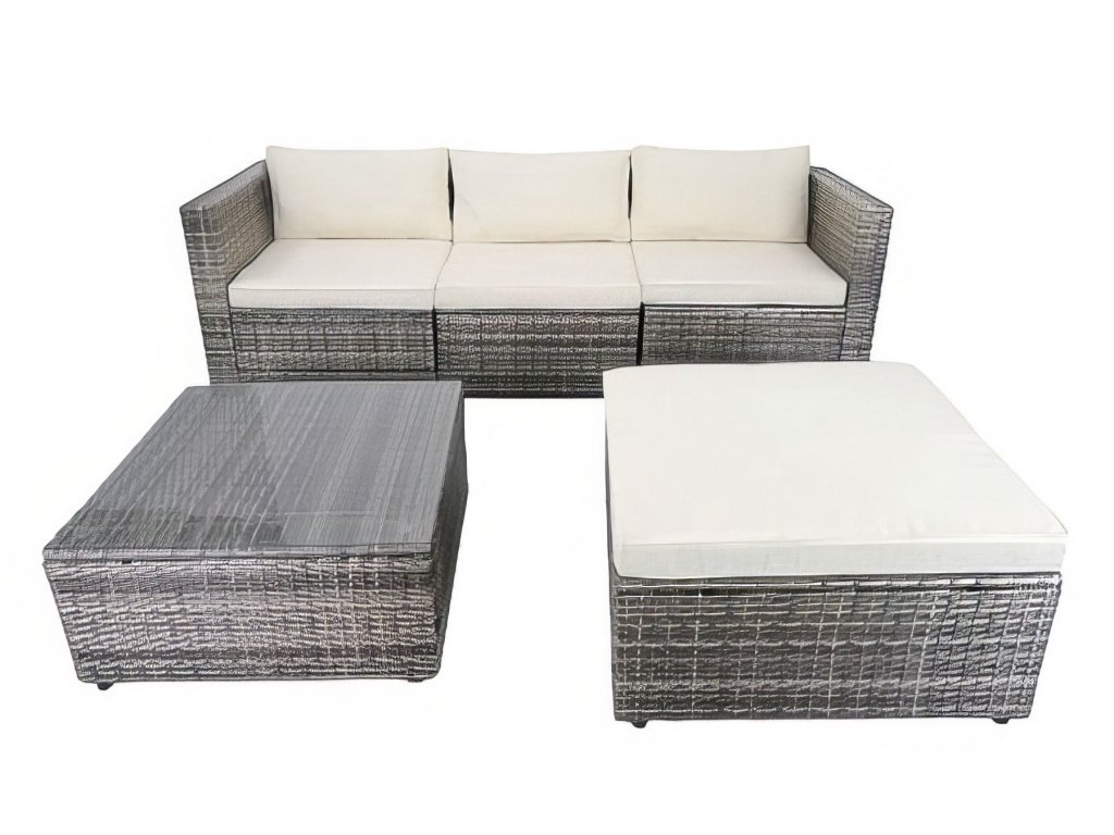 Zahradní ratanový set GRENADA rohová sedačka + stůl šedá/krém
