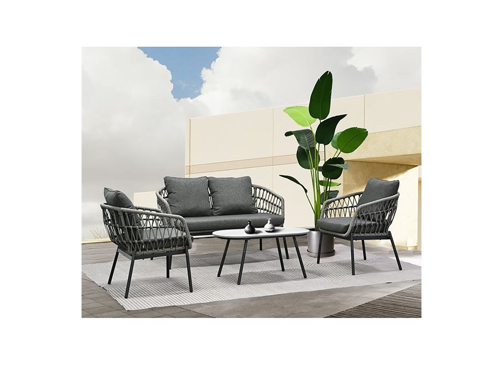 Tato elegantní zahradní sedací souprava značky Autronic je perfektní volbou pro každou venkovní terasu či zahradu. Je vyrobena z odolného polyratanu v šedém odstínu, který dodává nábytku svěží a moderní vzhled. Konstrukce z kovu s práškovou úpravou v antracitové barvě zaručuje dlouhou životnost a stabilitu. Voděodolné polštáře poskytují maximální pohodlí a jsou ideální pro venkovní použití za každého počasí. Deska stolku je vyrobena z polywood materiálu, který má velmi dlouhou životnost a je odolný proti vnějším vlivům počasí.Tento set kombinuje styl a funkčnost, ať už chcete relaxovat nebo uspořádat venkovní posezení s přáteli. Souprava je navíc snadno udržovatelná a velmi praktická.