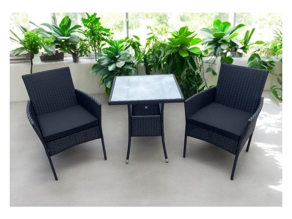 Zahradní ratanový set MADEIRA 2 křesla + 1 stůl černá/šedá