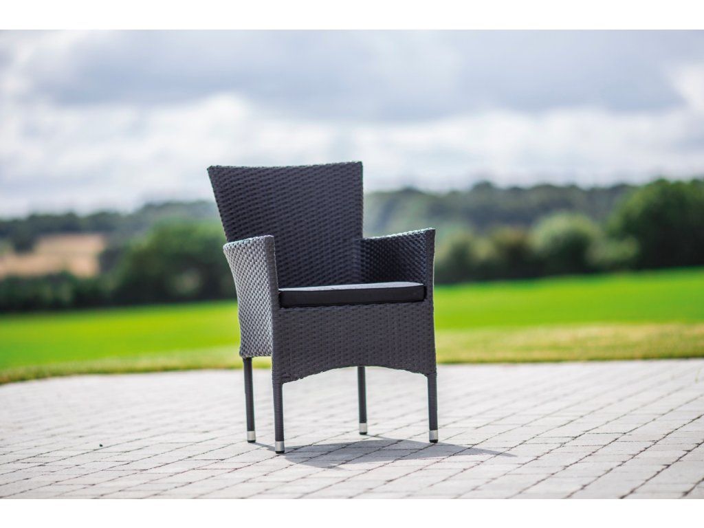 Zahradní křeslo z umělého ratanu. Díky volbě materiálu je křeslo lehce omyvatelné a jeho údržba není nijak náročná. Rozměry křesla jsou ( Š x V x H cm ) - 57 x 87 x 62 cm. Výška sedu je 42 cm. Jako bonus zdarma dodáváme včetně sedáku černé barvy, rozměr 46 x 47 x 3 cm (potah snímatelný pratelný). Konstrukce je kovová obalená kvalitním plastem připomínajícím ratan. Barevné provedení - antracit.