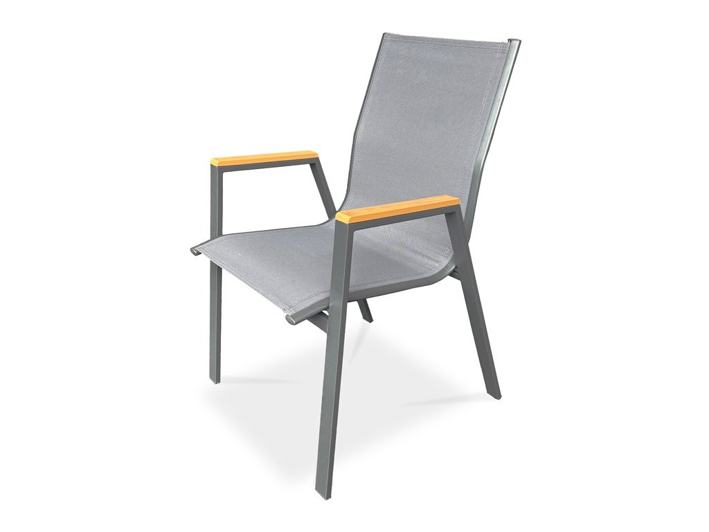 Moderní zahradní židle značky Autronic v elegantní šedé barvě představuje ideální volbu pro stylové venkovní posezení. Sedák i opěrák z kvalitního textilu zaručuje pohodlí a snadnou údržbu. Pevná kovová konstrukce s práškovou povrchovou úpravou zaručuje odolnost vůči vnějším vlivům. Polywoodové područky dodávají přírodní akcent, který krásně kontrastuje s minimalistickým designem. Bez nutnosti montáže je židle ihned připravena k použití, což oceníte při rychlém zařizování venkovního prostoru. Skvěle se hodí k venkovním stolům na terase nebo zahradě.