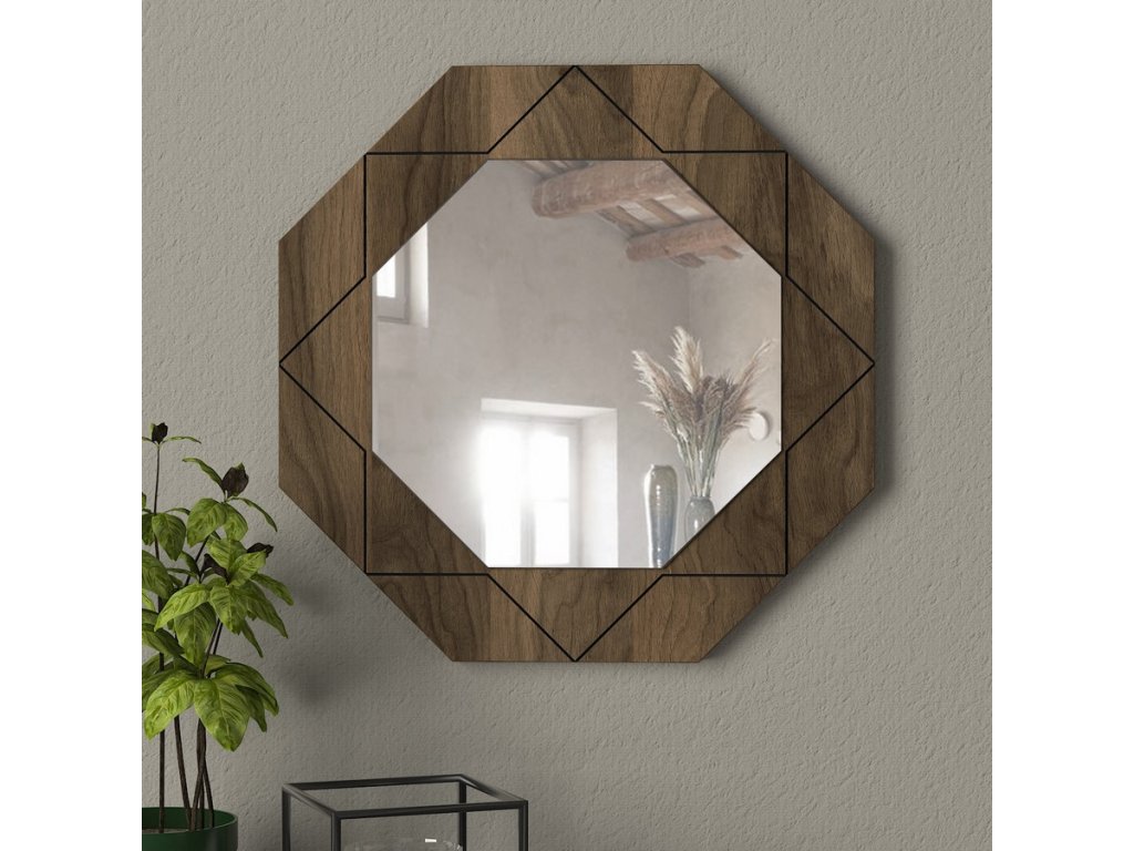 Zrcadlo, rám je vyroben z kvalitního lamina o tl.18 mm hraněné PVC páskou, odolného proti poškrábání v barvě vlašský ořech. Dodáváme v demontovaném stavu.