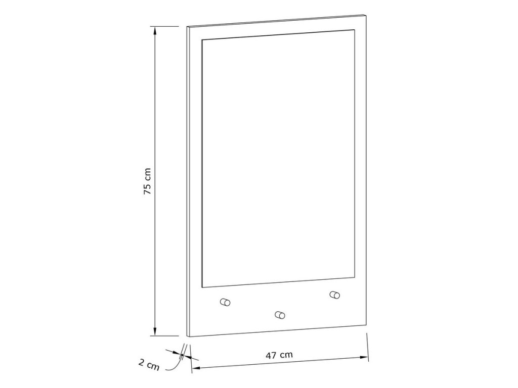 šířka: 50 cm | výška: 65 cm | hloubka: 2 cm Zrcadlo je vyrobeno z desky LTD v barvě borovice sněžná. Dodáváme v demontovaném stavu.